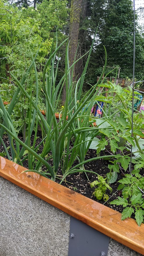 So far, the couple have planted tomatoes, onions, peas, strawberries, and potatoes. Since it’s their first growing season with the beds and Kristen is more of a flower gardener traditionally, they’re enjoying experimenting to see how things turn out.