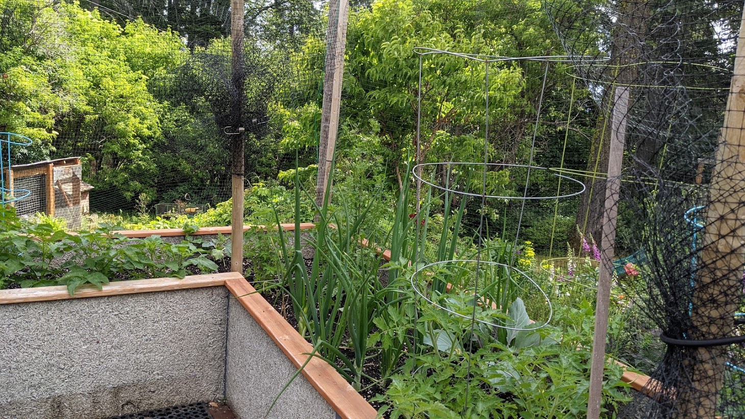 A principios de 2020, Guy y su esposa, Kristen, compraron dos Durable GreenBeds de 10x10x2 en forma de U. Kristen dice que quería pedir más, pero no había suficiente espacio en su jardín de Hood River, Oregón, rodeado de árboles altos en un entorno montañoso boscoso.